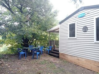 Coquet mobilhome bien placé en hauteur dans camping ouvert à l année calme et arboré. Tout proche des commodités, de la rivière et des chemins de randonnée. Pour habiter à l anné