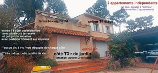 maison individuel de 190m2 terrain de 820m2 avec vue/axes routiers à proximité constituée en 2 apparts: en r d chaussé un lumineux t3 70m2 et en r de jardin t4 de 120m2; (acc