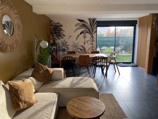 Rez de chaussée .Une pièce de vie spacieuse de 41M2 ouverte sur la terrasse grâce a trois Grandes baies vitrées coulissantes en alu avec double vitrage.Un insert bois fermé.Une cui