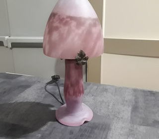 Vends : * Lampe : # = Lampe Champignon Art Déco En Pâte De Verre . # Éclairage au niveau de l'abat-jour + Le pied de la lampe s'éclaire également . # Couleur / Coloris