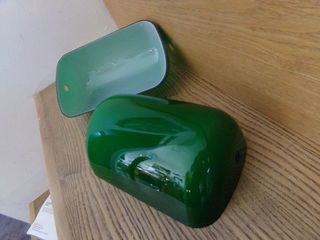 1 un Abat-jour baignoire en opaline verte et blanche pour lampe de bureau ou autre. 220 mm x 130 mm. H 80 mm. Trous de 12 mm. Neuf.