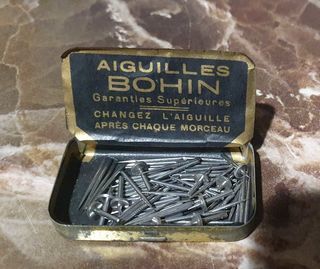 Boîte de 50 aiguiller pick-up douces P23 marque bohin. (Boîte gravée chez Toute la Musique avenue Mozart Paris 16e) jamais servi.