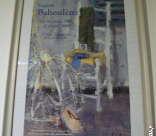 Tableau affiche Baboulène expo 2001 à Tamaris Encadrement en bois couleur taupe dimensions 76 x 56 cm TBE