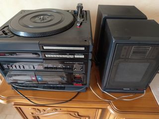 Chaine vinyle ,ampli , lecteur enregistreur cassette ,tuner radio ,équaliseur 5 bandes entrée cd avec les 2 enceintes marque Toshiba SL-3047