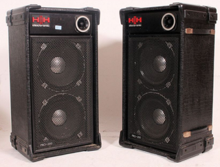 Une paire d'enceintes HH 200 Pro. Avec chaqune 2 HP puissants de 12? / 30 cm, et obus ? Tweeter. Dimensions : 88 x 48 x 38 cm . Avec Tube encastré pour montage sur pied. So