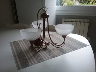 1 Lustre très bon état laqué marron avec appliques en verre. Moderne .