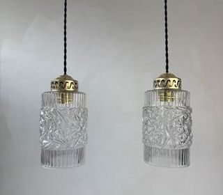 ENVOI POSSIBLE Achat sécurisé sur notre site internet nikel-forms Adresse sur simple demande Lot de 2 suspensions vintage en verre texturé. Belle lumière douce. E