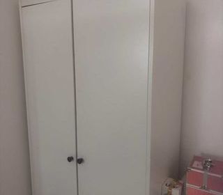 Armoire lit de 2 m de long sur 2,10 de haut et 0,40cm de profondeur. Partie haute deux portes aux extrêmités avec tablette de rangement et au centre tablette Partie basse lit som