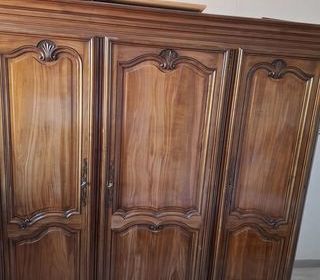 Cause déménagement, vds superbe armoire beaujolaise en parfait état. Noyer massif. Trois tiroirs intérieurs dont un tiroir secret. H:2.40; L: 1.45; P: 0.60 Prix à débattre