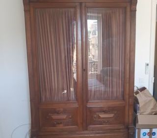 Magnifique armoire de style Louis Philippe. Un miroir recouvre l'avant du meuble afin que vous puissiez vous admirer lorsque vous vous parez de vos plus beaux atours. Vous pouvez