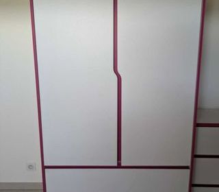 Bonjour, Je vends une armoire 2 portes coulissantes dont 1 avec miroir. 1 penderie de chaque côté. Démontée pour gain de place mais complète, manque juste 2 éléments de visserie