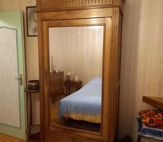 ARMOIRE BOIS ANCIENNE AVEC GRANDE GLACE, 1 PORTE, HAUT SCULTE 4 NIVEAUX DE RANGEMENT + 1 TIROIR HAUTEUR 2.34 M LARGEUR 0.53 M PROFONDEUR 0.43 TRES PROPRE ET EN BON ETAT VISI