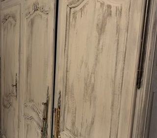Belle armoire de style actualisée par une peinture crème En chêne massif Penderie et étagère Cause déménagement