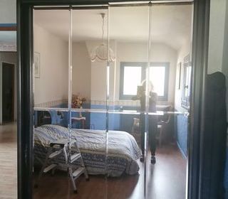 Chambre à coucher , Armoire, Table de Nuit, Lit Armoire vitres biseautés belle qualité dimensions Hauteur 2,10, Longueur 1,60, Largeurs 0.63 (grand espace de rangement). Tête de