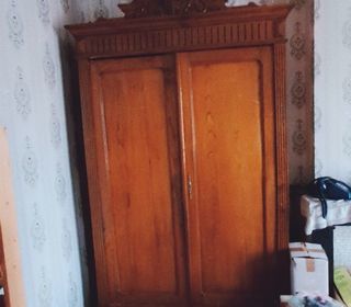 Je suis dans la maison depuis1921? bois de sapin peint, deux portes une etagere etdeux grandst iroirs. Tout est correct malgre mon grand age dimensions:130/45/95