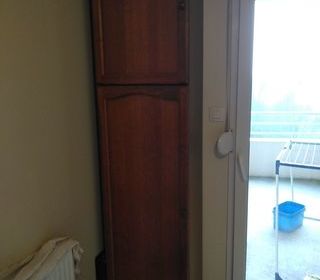 Vends armoire de cuisine à deux étages avec 7 étagères, hauteur : 2,15 m, largeur : 50 cm, profondeur : 34 cm, en bon état
