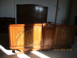 Chambre à coucher complète bois massif finition vernis * Lit 140 x 190 + Armoire + 2 chevets. Peu convenir pour maison secondaire à la campagne ou autres Très bon état. A venir