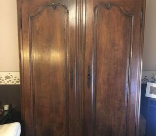 cause déménagement à vendre une belle armoire ancienne démontable avec 4 plateaux et 2 grands tiroirs en bas de l'armoire. Dimensions : Largeur 1 m 28, Hauteur 2 m 02, Profondeur 5