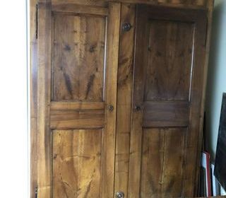 Armoire en bois massif (noyer je crois!) 3 étagères +3 tiroirs Dimension : Largeur 55cm Longueur 138cm + 30cm de corniche Hauteur 210cm A démonter sur place