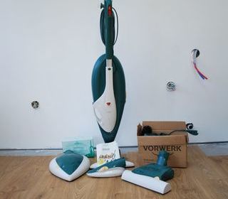 Aspirateur Vorwerk 136 avec de nombreux accessoires (pour tapis, matelas...) en bon état de marche. Quelques tâches sur le devant mais qui ne l'empêche pas de fonctionner
