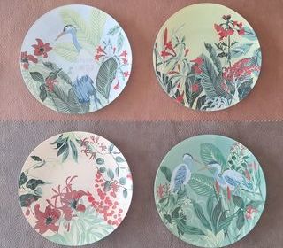 lot de 4 assiettes à dessert en verre neuves marque linvosges thème oiseaux héron nature décor floral végétal diamètre 16 cm