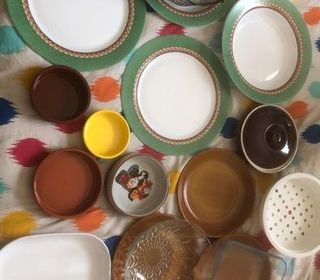 lot de80 u d assiette plate 80u creuse 80u dessert 80u couvert et verre de19 et 12cl possible de diviser en petit lot a prendre sur place