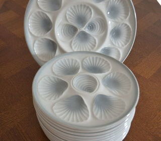 Service à Huitres Porcelaine Blanche et Bleue 12 Assiettes - 6 huitres + 1 Plat - 12 huitres Assiette 6 Huitres et 1 Sauce/ Diam:25cm Plat 12 huitres et 2 sauces/diam:33,5cm