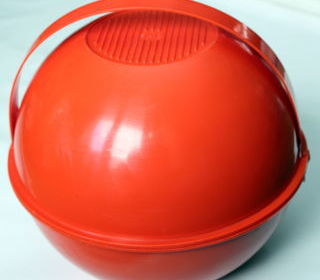Boule Picnic Set orange GUZZINI - PIC BOLL by CARLO VIGLINO - Space Age vintage 70 Boule pique-nique 1970 complet Design Carlo Viglino Edition Guzzini ø 27 cm Gravé Guzzini s
