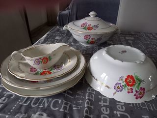 Vends un service en porcelaine de marque italienne Tognana qui comprend en totalité 84 pièces en très bon état : - 12 assiettes creuses - 12 assiettes dessert - 24 assisettes