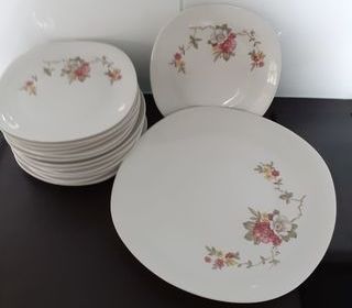 Vend service vaisselle blanc en porcelaine : 42 assiettes plates, 24 assiettes creuses,11 assiettes dessert ( prix 1 € piéce) et divers plats ( longs, creux, saladiers , plats à