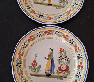 Deux magnifiques assiettes Henriot Quimper femme et homme, (léger éclat sur celle de la femme en haut à droite) 30 euros les deux