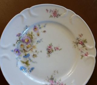Assiettes a dessert ( 10 pièces ) Porcelaine blanche avec décor de fleurs couleur pastel Très bon état A prendre sur place