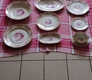 6 assiettes mauves de 20 cm de côté dont une est légèrement ébréchée (voir les photos) La totalité pèse 3,6 kg (environ) hors emballage Envoi en France Métropolitaine par mondial