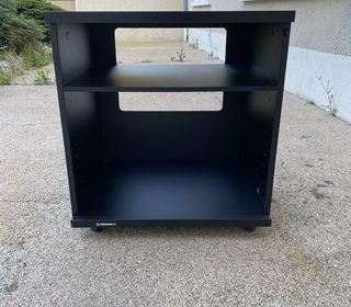 Meuble noir sur roulettes 1 étagère amovible 1 porte vitrée Marque PIONEER Hauteur 60 Largeur 55,5 Profondeur 46,5 En excellent état état Disponible de suite car démén