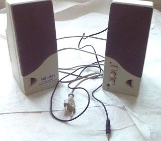 Enceintes MS-696 Plastique jauni par le soleil sur une enceinte Dimensions : 13,5 cm (hauteur) x 10 cm(largeur) x 14 cm (profondeur) Longueur du câble d'alimentation : 1,4 m en