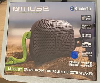 Enceinte portable sans fil Bluetooth Muse M-360 BT Noir 10 mètres de portée Durée de la musique jusqu'à 5 heures Résistance aux projections d'eau Dimension : L95*H78*P53