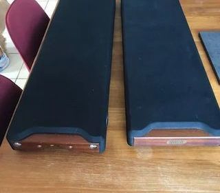 Très belle paire d'enceintes Anglaises Séquences modèle 30 86,5 cm de haut, 25.5 de large et 7.5 cm d'épaisseur. Réalisée par Paul Burton, un ancien de chez Infinity. Pied a
