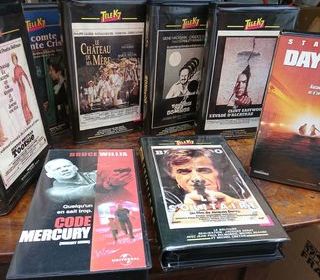 vends ou troque ( mobilier ), par lot des cassettes VHS achetées enregistrées sous blister bibliothèque personnelle. films policier, thriller, comédie enfants années 80/90 environ