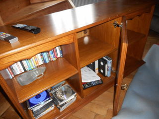 meuble de télé artisanal bois 4 emplacements pour rangement CD ou bibelots décoration