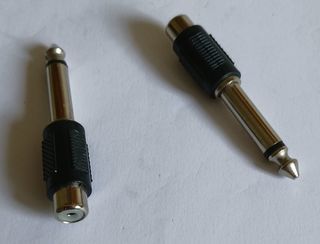 Adaptateur RCA femelle vers Jack mono 6.35 mm mâle. Lot de deux pièces.