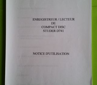 STUDER D 741 ENREGISTREUR DE COMPACT DISC STUDER D741 NOTICE D'UTILISATION EN FRANÇAIS