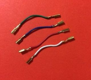 <strong>Jeux de fils cellule - platine vinyle</strong> Jeux de fils de liaison porte cellule vers cellule pour platine tourne disque. En parfait état, cosses plaquées Or