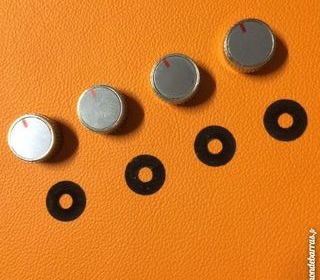 <strong>Boutons Uher 4000 report </strong> Jeu de 4 boutons pour Uher 4000 report en parfait état Livré avec les petites vis de serrage et les 4 rondelles feutre qui protège