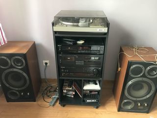 Je vends cet ensemble hifi vintage, parfait pour écouter votre musique préférée avec un son de qualité. - Type de produit : Chaîne hifi - Accessoires inclus : Platine vinyle Akaï,