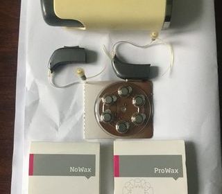 Appareils auditifs à piles réglables,(bouton sur les oreillettes) avec son lot de piles et accessoires de nettoyage