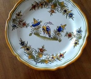 ASSIETTE-DECOR . FAIENCERIE D'ART D'ANGOULEME . LE RENOLEAU. diametre 26 cm . POIDS :510 gr. PRIX : 8 € 00