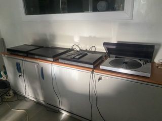 Tout les éléments s'allument, la platine tourne bien. Tout les câbles de liaisons des éléments sont présents sauf les 2 câbles de liaisons HP. Antennes et deux télécommandes présen