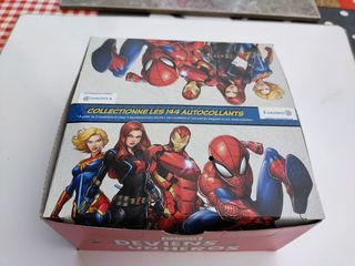 BONJOUR Je vends 40 euros un lot de 309 paquets de 4 autocollant neufs non ouverts donc + de 1200 autocollants neufs. "" DEVIENS UN HEROS DE MARVEL "" Année 2020