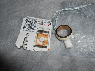bague mixte, de couleur or métal cuivre et blanc en céramique , modèle connecté, pour téléphone portable bluetooth ( appels signal) voir sur le web cadeau en doublon, état neuf s