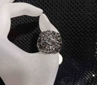 Bague pour homme Forme tête de lion Matières acier et strass Couleurs argenté et blanc Taille 21 = 62 Dimensions 2.5cm de long : 2.5cm de large : diamètre intérieur 2.2cm En